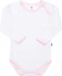 Dugi rukav, preklopni (omotajući) izrez i drukeri između nogica olakšavaju odijevanje i presvlačenje. Pamučni materijal je nježan i prozračan.