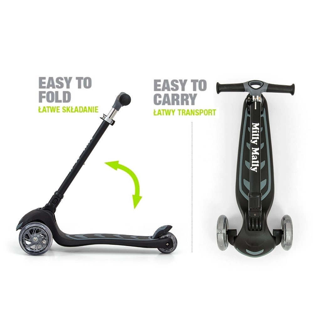 Romobil Milly Mally Boogie izvrstan je izbor za aktivnu djecu koja vole kretanje i zabavu. Zahvaljujući laganoj aluminijskoj konstrukciji s ojačanom plastikom, izdržljiv je, jednostavan za upravljanje i idealan za šetnje i vožnju oko kuće. Upravljanje se odvija naginjanjem tijela, što potiče ravnotežu i koordinaciju.