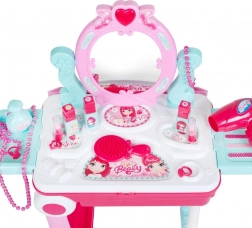 Otkrijte čarobni svijet šminkanja i mašte s dječjim toaletnim stolićem u koferu 2u1 BABY MIX. Nakon otvaranja putni kofer postaje stabilan toaletni stolić s ogledalom u obliku srca koje pri pritisku svijetli i ispušta nježan zvuk. Igračka je izvrsna za uloge, potiče finu motoriku i razvija kreativnost djece.