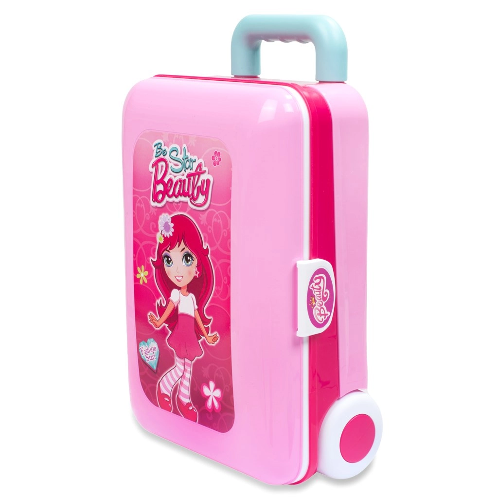 Bogata oprema uključuje sušilo, češalj, ogrlicu, narukvice, prstenove, “parfem” i dodatke za šminkanje – sve od zdravstveno ispravne plastike i bez prave kozmetike. Putovanja olakšavaju kotačići i teleskopska ručka, pa će mala vizažistica ponijeti svoj salon svuda sa sobom.