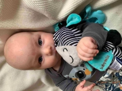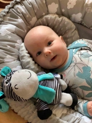 Ova edukativna glazbena igračka u obliku zebre izrađena je od ugodne meke plišane tkanine i opremljena čvrstim kopčom za lako pričvršćivanje. Glazbeni mehanizam s melodijom privlači pažnju djeteta i nježno ga umiruje. Zahvaljujući kontrastnom prugastom uzorku, raznolikim teksturama i mekom grizalu, igračka prirodno potiče senzorni razvoj.