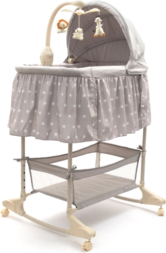 Multifunkcionalna kolijevka i krevetić za bebe New Baby, siva s zvjezdicama