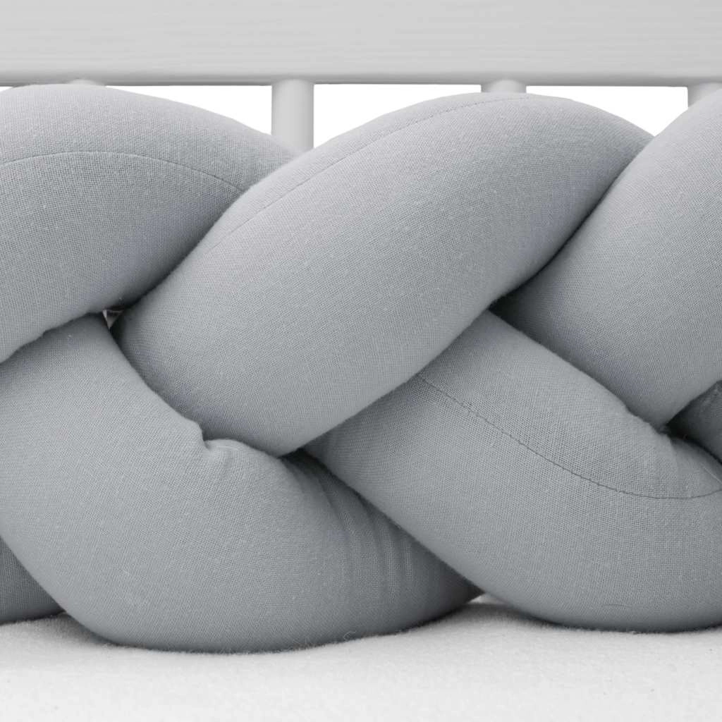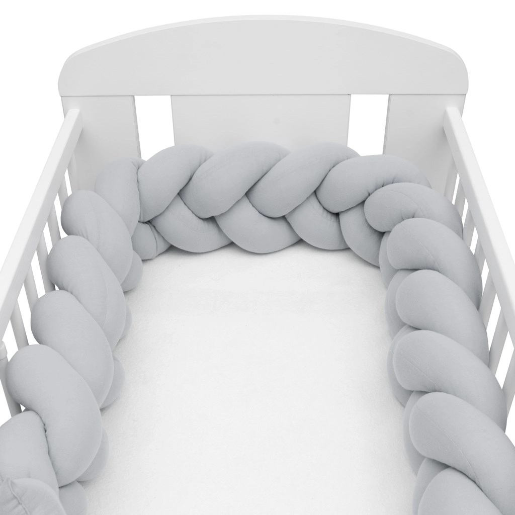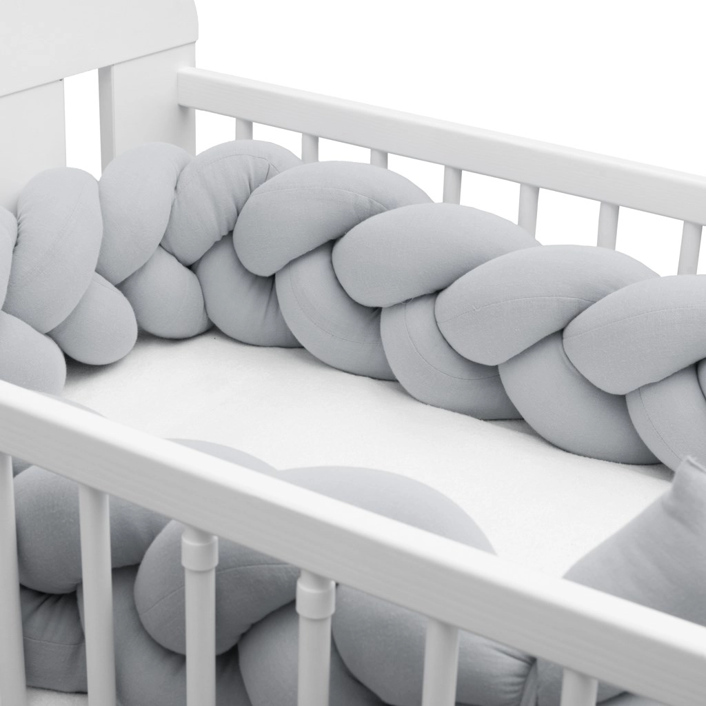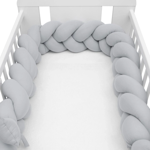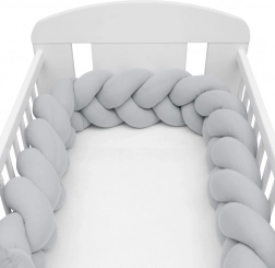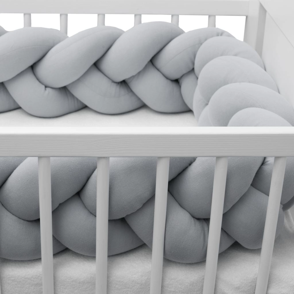 Meki muselinski pletenac New Baby u svijetlosivoj boji moderan je zaštitni obrub za dječji krevetić koji osigurava sigurnost, udobnost i cirkulaciju zraka. Zahvaljujući prozračnom muselinu i antialergijskom punjenju štiti bebu od udaraca o rešetke, izolira od hladnoće i lako se prilagođava svakom krevetiću.