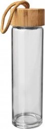 Ova stilska boca spaja čist dizajn s praktičnošću za svaki dan. Borosilikatno staklo je lagano, čvrsto i otporno na temperaturne šokove, pa možete uživati u vodi, soku, limunadi i vrućem čaju. Prirodni bambusov poklopac s čvrstom omčom olakšava prenošenje i daje bočici ekološki izgled.