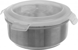Ova izdržljiva okrugla posuda za hranu kombinira robusnu inox zdjelu i prozirni poklopac s gumenom brtvom. Četiri čvrste kopče omogućuju sigurno i nepropusno zatvaranje, pa je odlična za umake, salate i užine. Nehrđajući čelik je izdržljiv i higijenski te ne upija mirise; zdjelu je moguće prati u perilici posuđa (poklopac preporučujemo prati ručno).