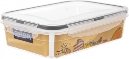 Praktična i izdržljiva kutija za hranu zapremnine 1 l s dijelnim ulošcima, zračnotjesnom silikonskom brtvom i četiri kopče na zatvaranje. Prozirna izvedba za trenutnu kontrolu sadržaja, bez BPA, prikladna za perilicu posuđa, mikrovalnu (bez poklopca), hladnjak i zamrzivač. Idealna kao lunch box za posao, školu i putovanja.