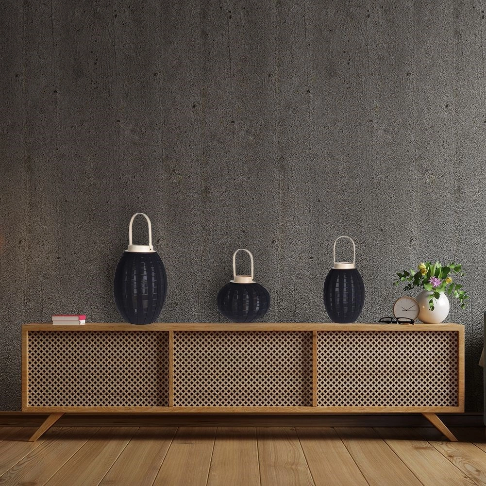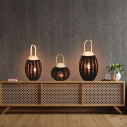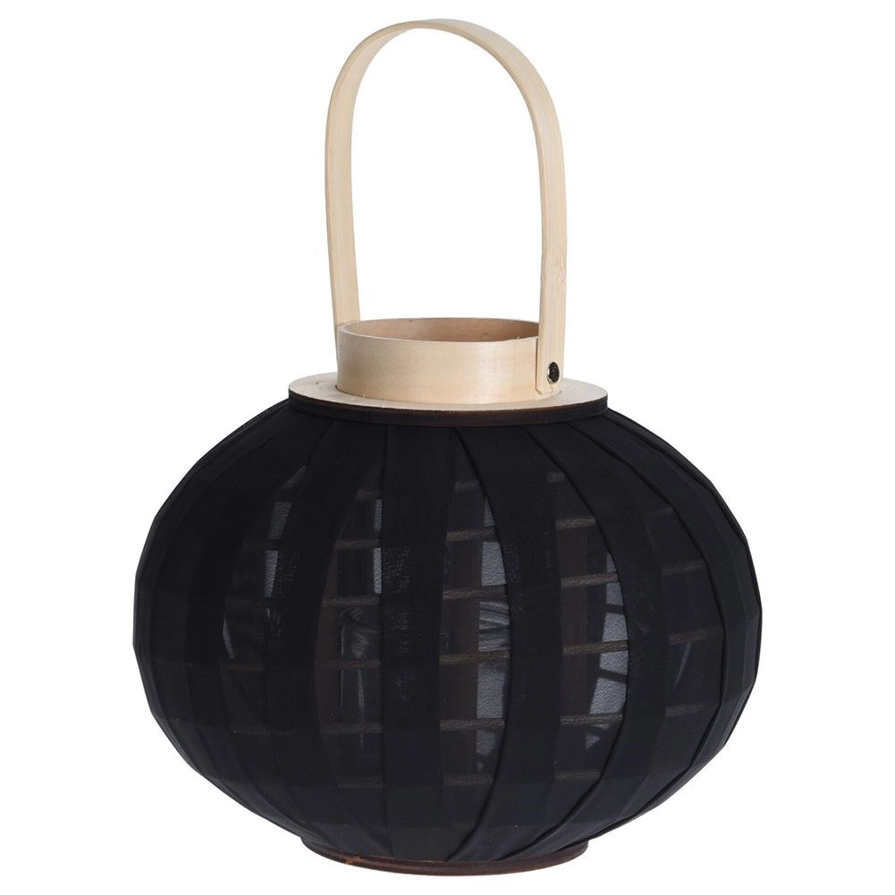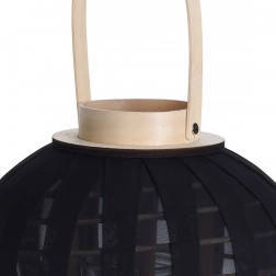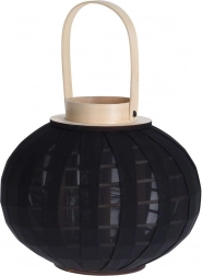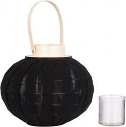 Elegantni crni lampion s prirodnom drvenom ručkom stvara ugodnu atmosferu te sigurno skriva plamičak u staklenom cilindru. Zahvaljujući kompaktnim dimenzijama 22 × 24 cm, prikladan je za stol, policu te kao dekoracija za terasu ili balkon.