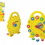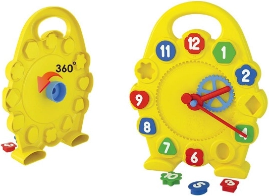 Svako dijete voli učiti, samo to ne smije biti dosadno. Uz ovu slagalicu djeca vježbaju finu motoriku zahvaljujući umetnim oblicima s brojevima. Dijete se na zabavan način upoznaje s očitavanjem sata, uz mehaničko okretanje velike kazaljke koja pomoću zupčanika pokreće i malu kazaljku.