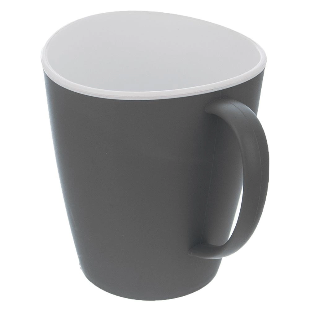 Lagana i izdržljiva plastična šalica zapremnine 380 ml idealna je za svakodnevnu uporabu i za putovanja. Ima udobnu ručku, dvobojni izgled i moderan dizajn. Može se prati u perilici posuđa i koristiti u mikrovalnoj pećnici do 95 °C. Savršena za kavu, čaj i hladna pića, izvrsna alternativa jednokratnim čašama.