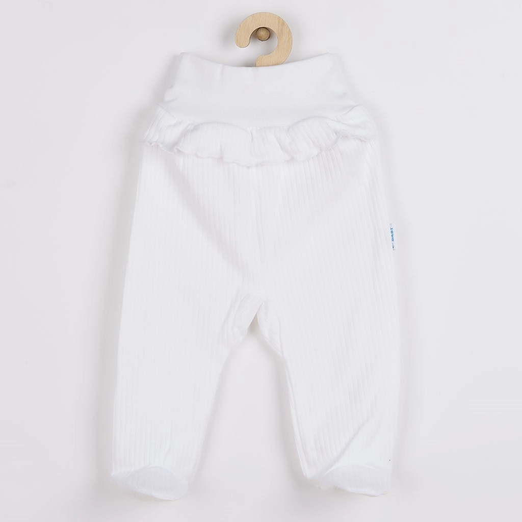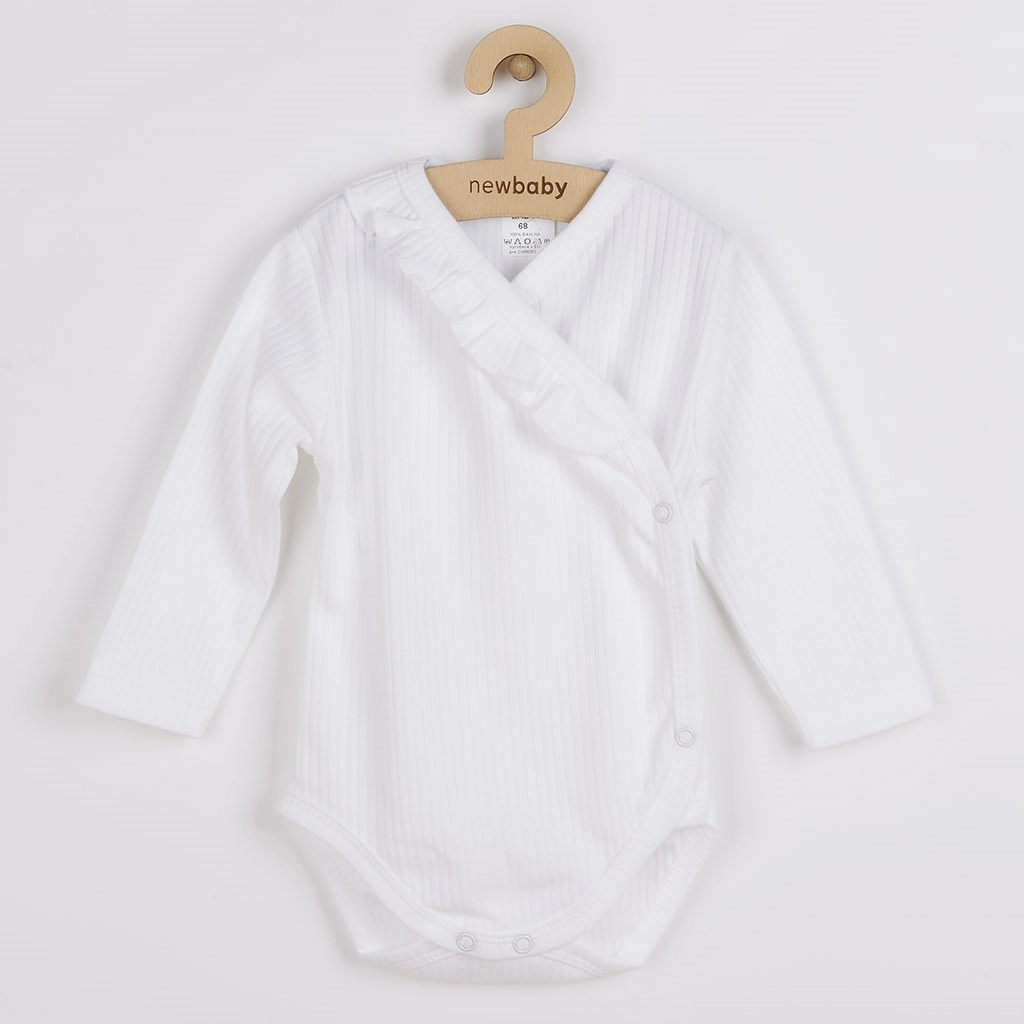 Presladak dvodijelni set NEW BABY Stripes u bijeloj boji idealan je izbor za osjetljivu bebinu kožu. Zahvaljujući kvalitetnoj pamukovini i mekom rebrastom pletivu odjeća je prozračna, ugodna na dodir i prikladna za svakodnevno nošenje. Body s dugim rukavima ima bočno kopčanje i drukere između nožica za brzo presvlačenje, a polu-tajice s elastičnim pojasom nježno obgrle trbuščić bez neugodnog pritiska.