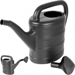 Praktična siva kanta klasičnog oblika spaja malu težinu s visokom izdržljivošću. Zahvaljujući dugom grlu udobno ćete zaliti i teže dostupne biljke, dok odvojiva ružica pruža nježan tuš za osjetljive listove i presadnice.