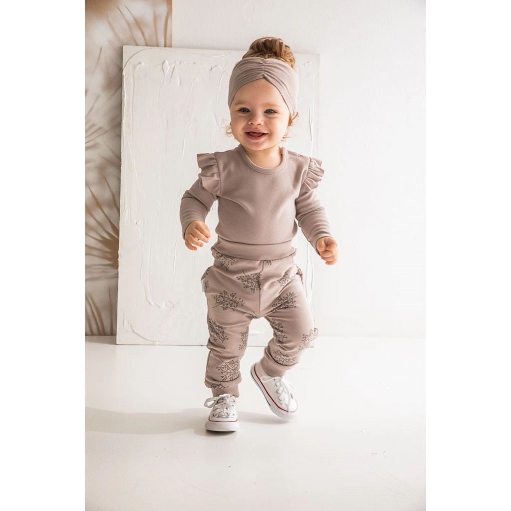 Kolekcija ELLA donosi razigrani cjeloplošni print i bezvremenski dizajn koji se lako kombinira s ostalim komadima garderobe. Širok rebrasti pojas i rubovi na nogavicama osiguravaju sigurno i udobno nošenje bez pritisaka.