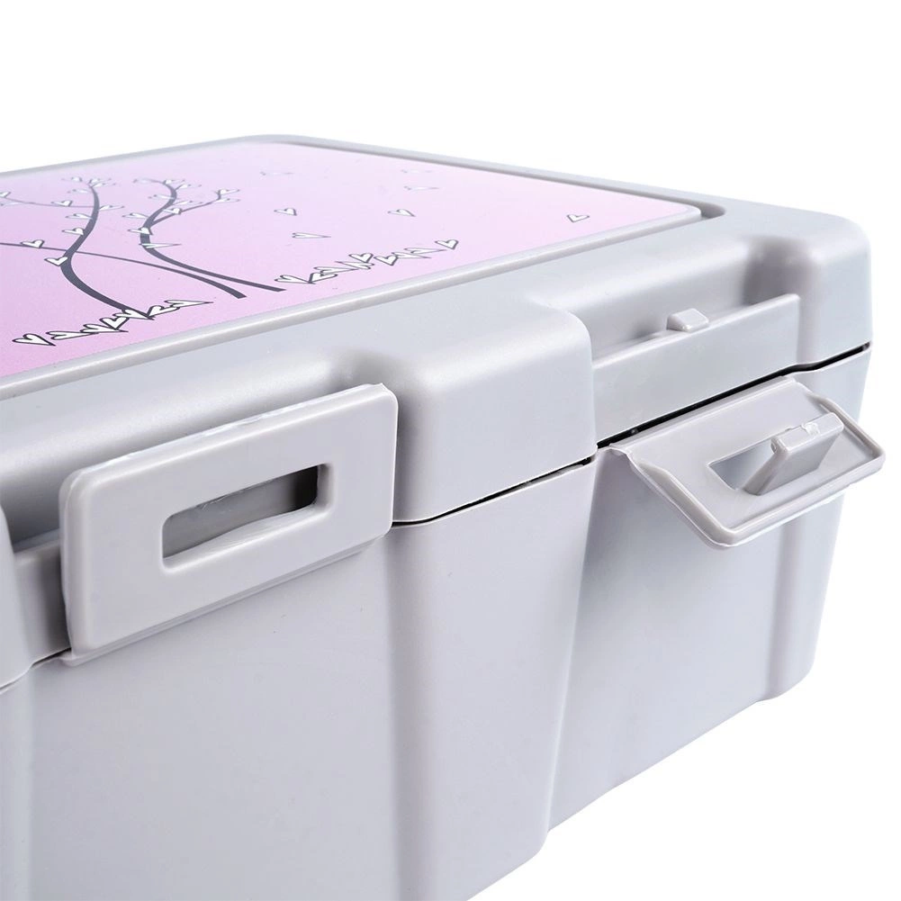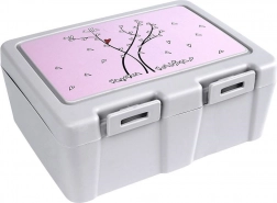 Kutija je izrađena od kvalitetne plastike sigurne za kontakt s hranom, u elegantnoj sivoj boji s dekorativnom ružičastom pločom s motivom srca. Idealna za djecu u školu i odrasle na posao, izlete ili putovanja. Radi očuvanja izgleda ne preporučuje se pranje u perilici posuđa niti grijanje u mikrovalnoj pećnici.
