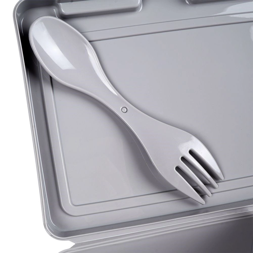 Kompaktna žlica-vilica (14,5 cm) ima svoje mjesto ispod poklopca, pa je nećete zaboraviti i uštedjet ćete prostor u torbi.
