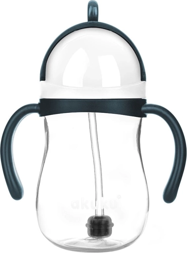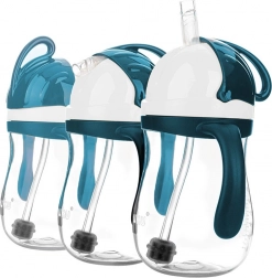 Ova čarobna bočica zapremnine 280 ml osmišljena je za udobno i samostalno pijenje djece od 9 mjeseci. Otežana silikonska slamka prati tekućinu i pri naginjanju ili okretanju bočice naglavačke, pa dijete lako popije cijeli napitak. Čvrsto zatvaranje minimalizira rizik od curenja i istovremeno štiti slamku od onečišćenja.