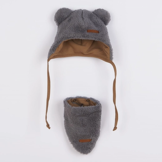 Zimska bebi kapa sa šalom za vrat NEW BABY Teddy bear, siva
