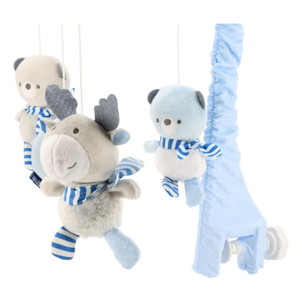 Elektronički vrtuljak za krevetić Baby Mix izvrstan je pomoćnik za mirno uspavljivanje i zabavu tijekom dana. Nakon pokretanja figurice se glatko okreću, a reproducira se izbor od 30 melodija i umirujućih zvukova. Mekane plišane figurice u nježnim bojama zaokupljaju dječji vid i potiču razvoj koordinacije oko–ruka.
