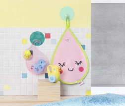Ružičasti ručnik u obliku kapljice s nasmiješenim licem pruža nježnu teksturu za zabavu i osjećaj ugode vašeg djeteta tijekom igre.