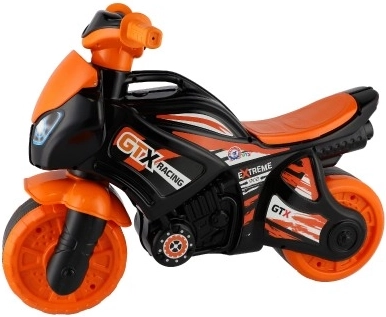 Dječji odrazni motocikl u sportskom dizajnu oduševit će sve male ljubitelje brze vožnje. Zahvaljujući izdržljivoj plastičnoj konstrukciji, idealan je za zabavnu i sigurnu igru. Dizajn je pretežno narančasto-crni s logotipima GTX Racing, što daje osjećaj pravog trkaćeg motora.