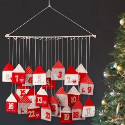 Kalendar sadrži 24 tekstilna džepića u obliku kućica (cca 10 × 15,5 cm), u koje lako možete sakriti mini darove, zadatke, poruke ili slatkiše. Čvrst filc drži oblik, ugodan je na dodir i kalendar možete koristiti iz godine u godinu.