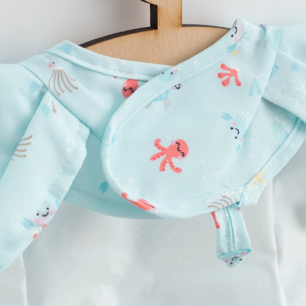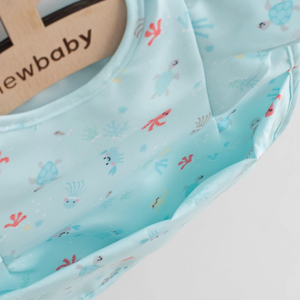 Stilski dječji podbradak s volanima marke New Baby pouzdano štiti odjeću pri jelu i igri. Izrađen je od laganog poliestera, ima udobno kopčanje na čičak, praktičan mekani džep i donji dio s vodootpornom obradom. Jednostavno se održava – dovoljno ga je obrisati ili oprati u perilici rublja.