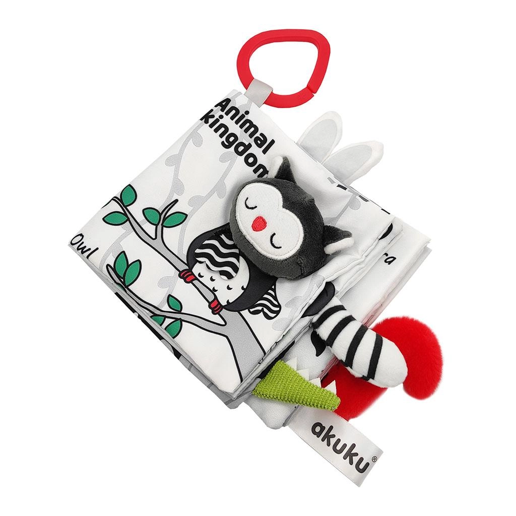 Otkrijte nježnu i zabavnu igračku za najmlađe – dječju senzornu kontrastnu knjižicu Akuku sa životinjicama. Podržava razvoj od prvih dana zahvaljujući kontrastnim bojama, različitim teksturama i zvučnim elementima poput zviždaljke i zvečkice. Mekana je na dodir, lako se drži i ima praktičnu kopču za pričvršćivanje na kolica ili dječji krevetić.
