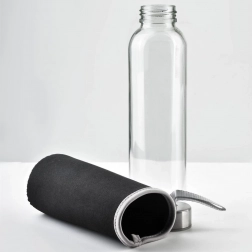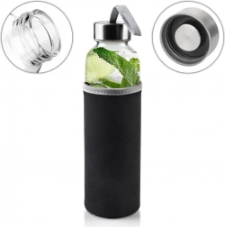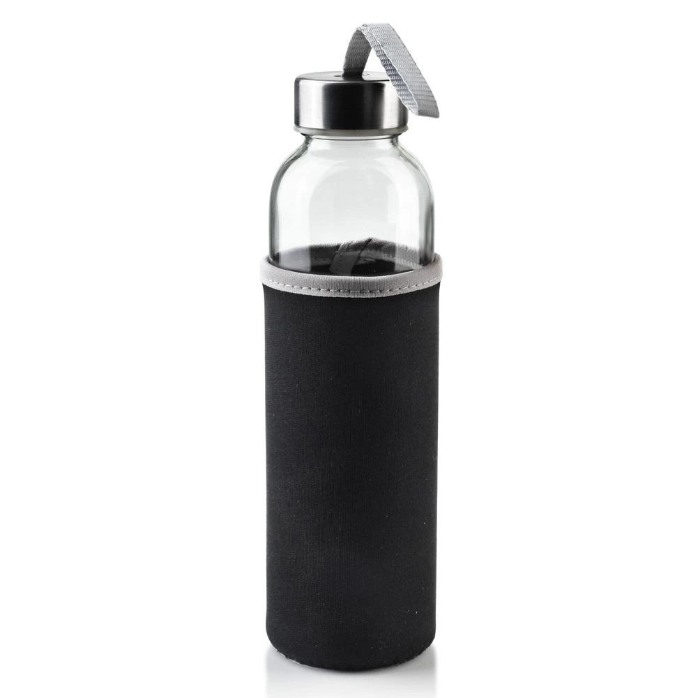 Staklena boca za vodu s neopren navlakom 490 ml crna