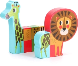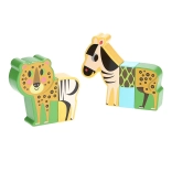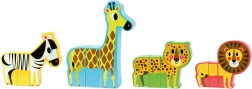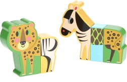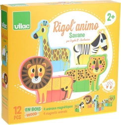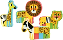 Drvene puzzle Veseli safari donose djeci od 2 godine zabavu na drugačiji način: svaka je životinjica sastavljena od masivnih dijelova sa skrivenim magnetima koji glatko prianjaju. Dijelovi se mogu izmjenjivati između pojedinih životinja i stvarati zabavni “hibridi” koji potiču maštu i znatiželju.
