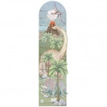 Instalacija je brza i bez problema – dovoljno je pričvrstiti na glatku, čistu površinu. Nježne pastelne boje i dinosaurov motiv pretvaraju zid u stilsku dekoraciju koja motivira djecu na redovito mjerenje.