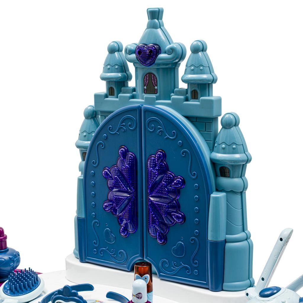 Priuštite djeci njihov vlastiti čarobni kutak ljepote. Toaletni stolić BABY MIX u ledenom dizajnu oduševit će efektim ogledalom koje se otvara pritiskom na čarobni štapić te će impresionirati svjetlosnim i zvučnim efektima. Praktična ladica čuva sve sitnice, dok stoličica osigurava udobno sjedenje tijekom igre.