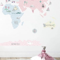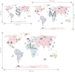 Ružičasta karta svijeta u veličini L elegantna je i istodobno praktična zidna dekoracija za dječju sobu. Prigušene pastelne boje izvrsno se uklapaju u moderne interijere i doprinose ugodnoj atmosferi za igru i učenje. Djeca se prirodno upoznaju s kontinentima, oceanima, stranama svijeta i poznatim znamenitostima.