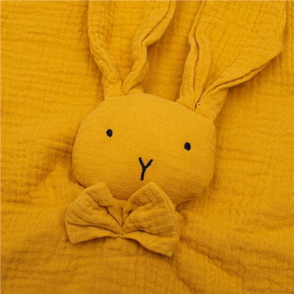 Meka mušelinova mazilica New Baby Rabbit u boji gorušice idealan je prvi tješitelj za bebu. Izrađena je od 100% organskog pamuka s mekanim punjenjem te pomaže stvoriti osjećaj sigurnosti i mirnog uspavljivanja. Minimalistički dizajn i nježne boje savršeno pristaju svakoj opremi za bebu i lijepo se slažu s ostalim mušelin proizvodima.