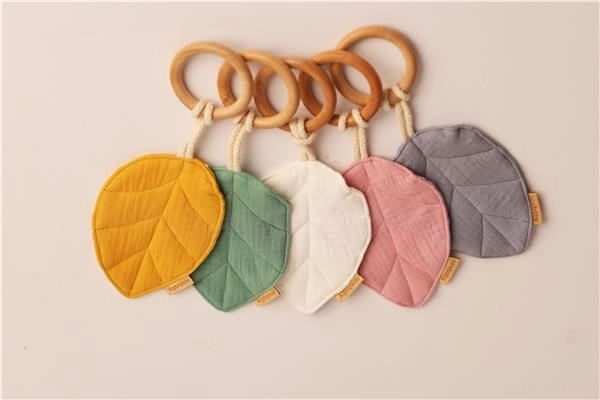 Praktična i stilska grickalica New Baby Leaf u sivoj boji pruža bebama trenutno olakšanje tijekom nicanja zubića. Kombinacija prirodnog bukovog drva i mekane muslin tkanine nježna je prema desnima i sigurna za svakodnevnu upotrebu. Grickalica se može koristiti i kao senzorička igračka za bebe te se odlično usklađuje s ostalim muslin proizvodima brenda.