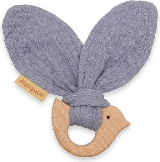 Grizalica s ptićem New Baby Bird u elegantnoj sivoj boji dizajnirana je za maksimalnu udobnost i sigurnost djeteta. Prirodno bukovo drvo je glatko, izdržljivo i nježno prema osjetljivim desnima, dok je mušelín od 100% organskog pamuka mekan, prozračan i ugodan na dodir. Zajedno čine praktično i estetsko pomagalo za svakodnevnu upotrebu.