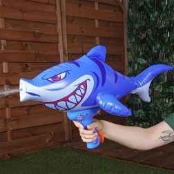 Uživajte u ljetu s nafukavajućim vodenim pištoljem u obliku morskog psa koji donosi sjajnu zabavu uz vodu i u vrtu. U pakiranju se nalazi i ručna pumpica za brzo napuhavanje. Pištolj ima veliki spremnik za vodu, izdržljiv je i jednostavan za upotrebu – dovoljno je napuniti ga vodom i pritisnuti okidač, a voda štrca iz “njuške” morskog psa.