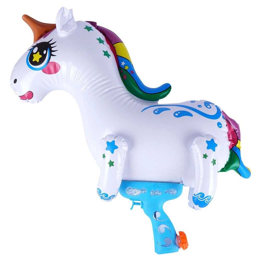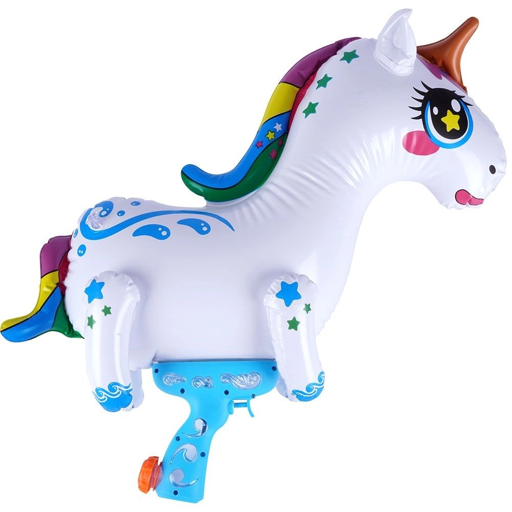 Zabavan nafukavajući vodeni pištolj u obliku jednoroga za igre uz vodu i na otvorenom. U paketu su pištolj i pumpica. Dimenzije pištolja: 55 × 18 × 58 cm. Veliki spremnik za vodu, jednostavna upotreba i izdržljiva izvedba osiguravaju sate sjajne zabave.