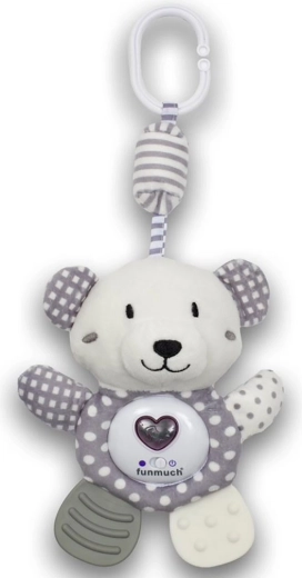 Ovaj šareni plišani medvjedić idealan je pratitelj za vašu bebu kod kuće i na putu. Zaintrigira svjetlima i melodijama, potiče sluh i vid te nakon povlačenja ugodno vibrira, što bebu smiruje. Šarene grickalice pomažu olakšati nelagodu pri nicanju zubića i potiču razvoj motorike.