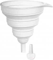 Sklopivi lijevak nezamjenjiv je pomoćnik u svakoj kuhinji. Zahvaljujući silikonskoj izvedbi lako se sprema, stabilan je i uz pravilnu uporabu traje dugi niz godina. Integrirana mjerna skala 50–300 ml olakšava precizno doziranje tekućina i rasutih sastojaka.