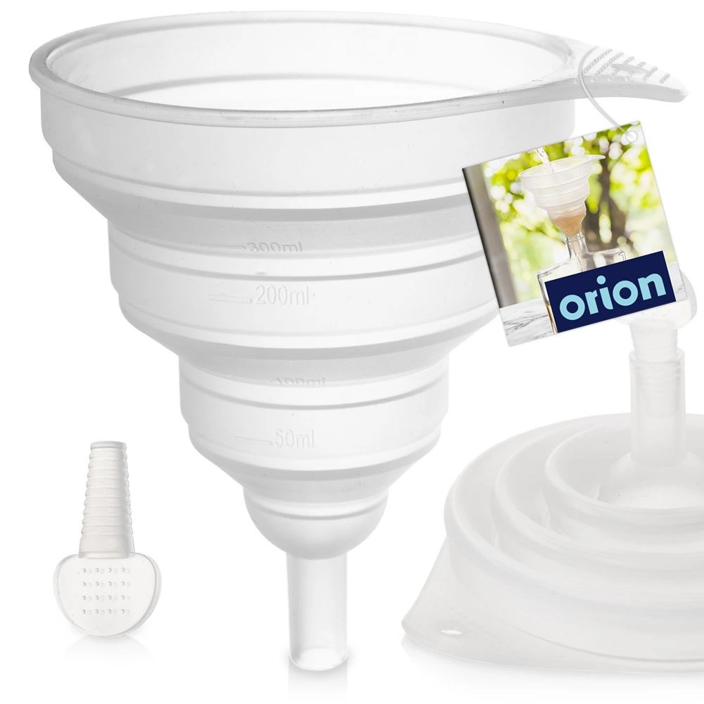 Praktičan sklopivi kuhinjski lijevak promjera 12 cm i visine 17 cm sa čepom i integriranom mjernom skalom. Izrađen od izdržljivog silikona, štedi prostor u ladici i pogodan je za punjenje boca i posuda. Otporan je na temperature do 100 °C i može se prati u perilici posuđa (bez čepa). Idealan za prelijevanje sokova, likera, vina ili piva te precizno mjerenje 50–300 ml. Izdržljiv materijal, sklopiva konstrukcija, mjerna skala, jednostavno održavanje.