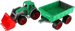 Ovaj traktor s utovarivačem i prikolicom izrađen je od robusne plastike koja izdržava dječju igru i otporna je na oštećenja.