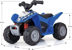 Zahvaljujući jednostavnom upravljanju – pritiskom na papučicu gasa – četverokota se glatko pokreće, uključuje se prednje svjetlo, a za zabavu se brine i truba. Vožnja potiče razvoj motorike, prostorne orijentacije i manuelne vještine. U pakiranju se nalaze baterija i punjač.