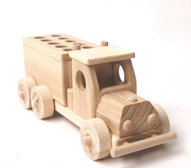 Unesite red na stol djece i odraslih s originalnim držačem u obliku kamiona. Izrađen je od prvoklasnog bukovog drva, a površina je samo voskana i polirana bez kemijskih obrada i bojanja – zahvaljujući tome zadržava prirodan izgled i miris drva. Okretna kotačića i zaobljeni rubovi osiguravaju sigurno i zabavno korištenje.