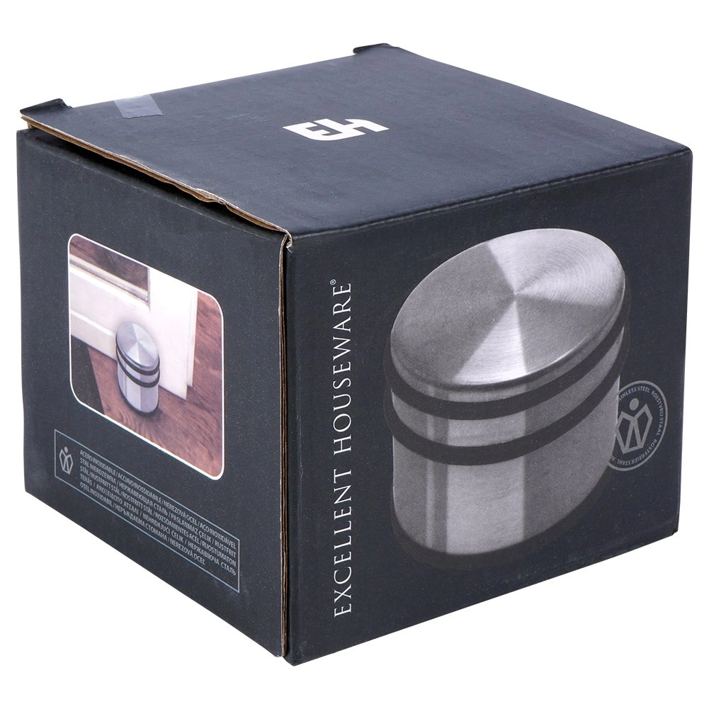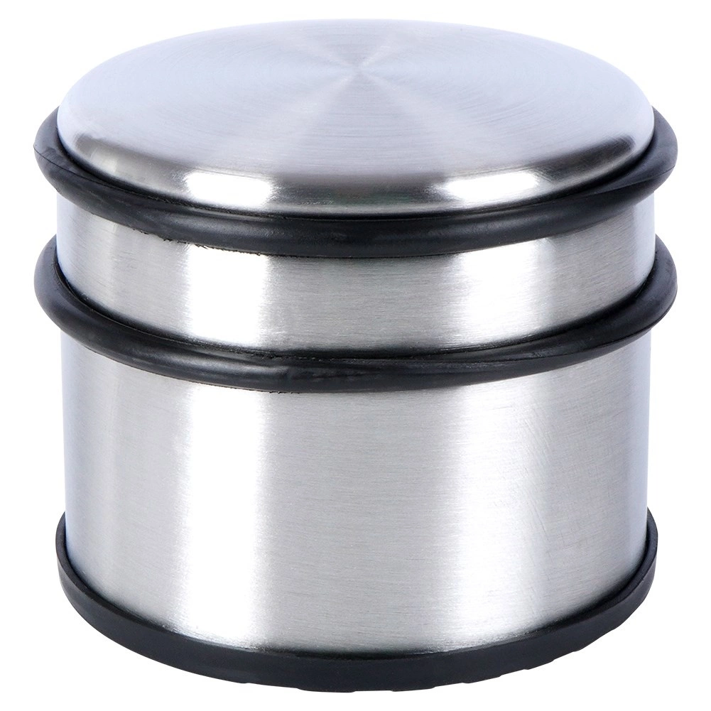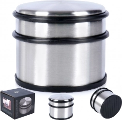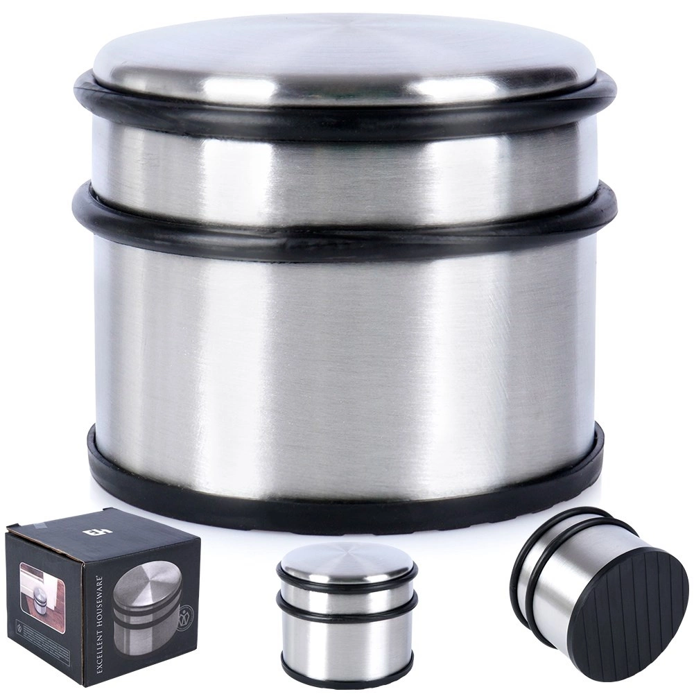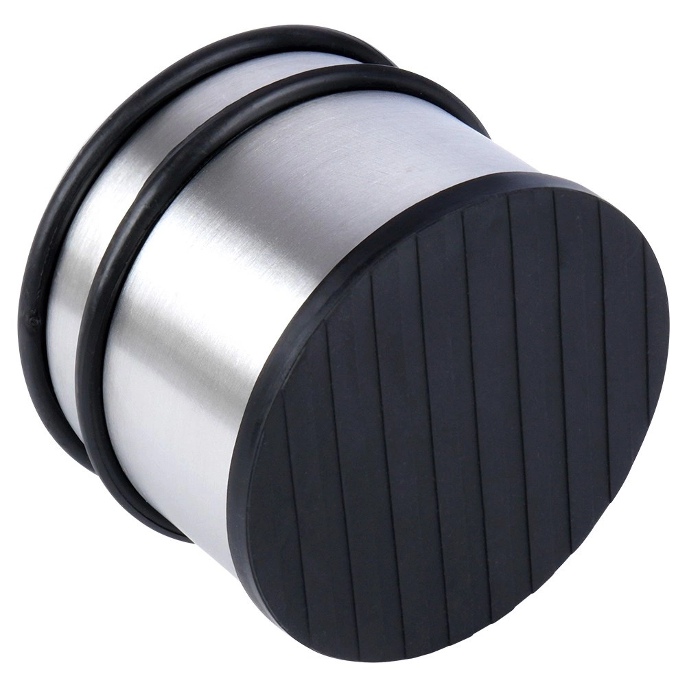 Robustan graničnik za vrata s modernim inox izgledom osigurava da se vrata ne zatvaraju samovoljno niti udaraju u zidove i namještaj. Masivna konstrukcija i protuklizna gumena baza jamče stabilnost na većini tipova podova.