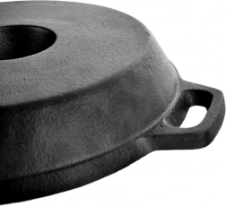 Masivna izvedba od litine izvrsno raspoređuje i dugo zadržava toplinu, pa se jela peku ravnomjerno i ostaju dulje topla.