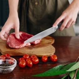 Nož je izvrstan izbor za svakodnevnu pripremu obroka – od finog rezanja voća i povrća, preko sjeckanja začinskog bilja, do porcioniranja mesa. Uz pravilnu upotrebu dugo će zadržati oštricu i postati nezaobilazan pomoćnik u svakoj kuhinji.