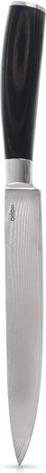 Univerzalni kuhinjski nož od 67-slojnog damaščanskog čelika s oštricom od 15,5 cm nudi dugotrajnu oštrinu, iznimnu izdržljivost i udobno ergonomsko držanje zahvaljujući dršci od pakka drva. Idealan za rezanje mesa, povrća, voća i začinskog bilja u kućanstvu i ugostiteljstvu.