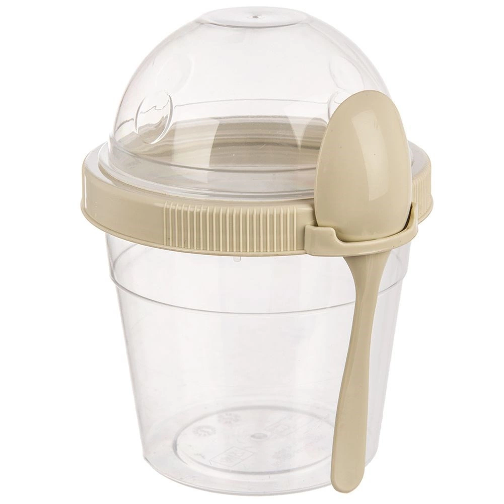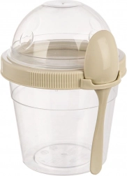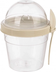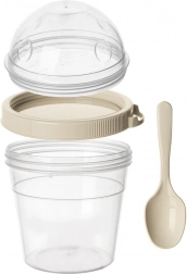 Uživajte u svježem jogurtu bilo kada i bilo gdje. Dvoslojna čaša drži jogurt i hrskave dodatke odvojeno, tako da ostaju svježi do trenutka kada ih pomiješate. Prozirno tijelo omogućuje brzu provjeru sadržaja bez otvaranja, a čvrst poklopac osigurava pouzdanu nepropusnost.