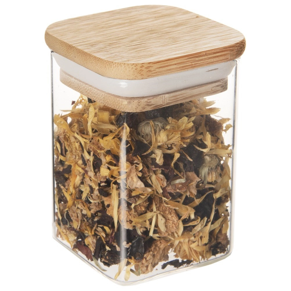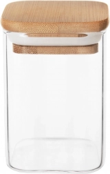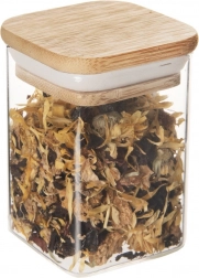 Elegantna staklena posuda zapremine 200 ml s bambuskim poklopcem i silikonskom brtvom čuva vaše namirnice dulje svježima. Izrađena je od izdržljivog borosilikatnog stakla, ima kompaktne dimenzije 6 × 6 × 8,5 cm i moderan kvadratni oblik. Idealna za kavu, čaj, začine, orašaste plodove i druge rasute sastojke. Zahvaljujući hermetičkom zatvaranju štiti aromu i okus te se odlično uklapa u svaku kuhinju.