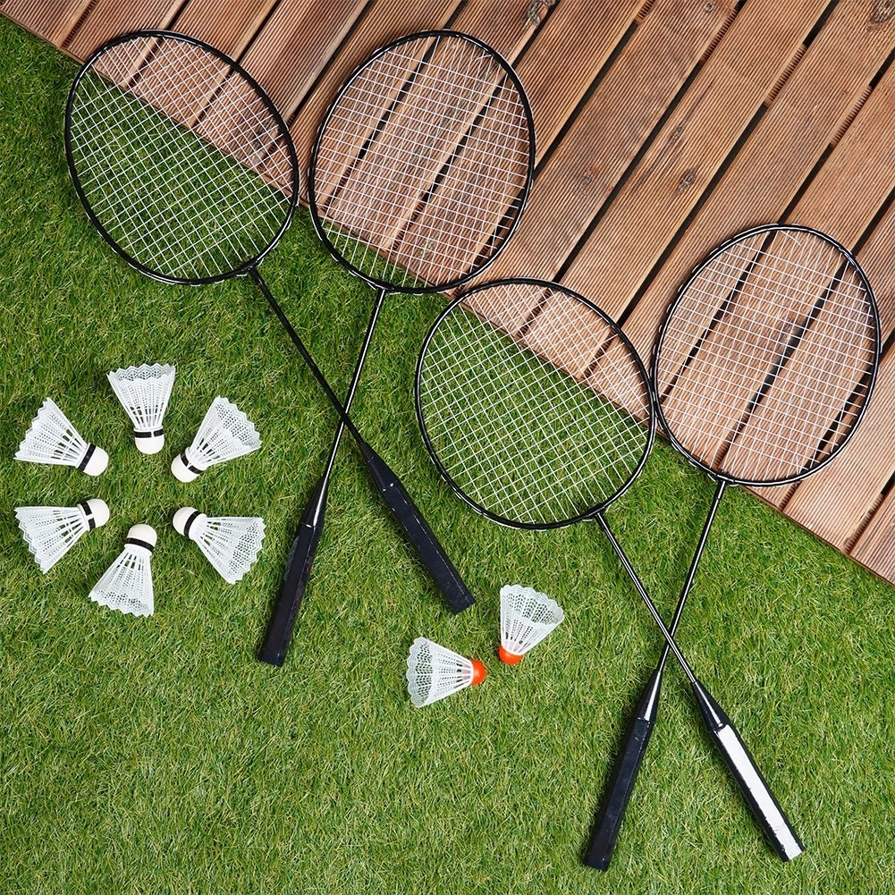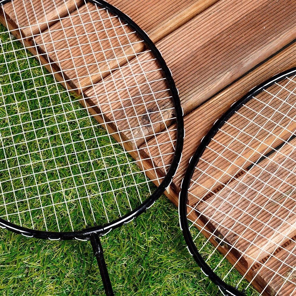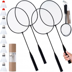Ovaj obiteljski i prijateljski set za badminton idealan je za mečeve parova i ležerno prebacivanje. Četiri lagana, ali čvrsta reketa s kvalitetnim žicama jamče siguran udarac i lako manevriranje. U kompletu je 8 plastičnih loptica s dvjema vrstama glava za različit doživljaj igre i bolju vidljivost.
