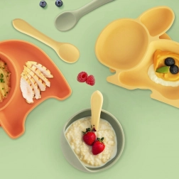 Praktična silikonska dječja žličica dužine 14 cm za najmlađe do 3 godine. Meka i sigurna za osjetljive desni, bez oštrih rubova, ima ergonomski oblik za male ručice i može se prati u perilici posuđa. Idealna za vježbanje samostalnog hranjenja.